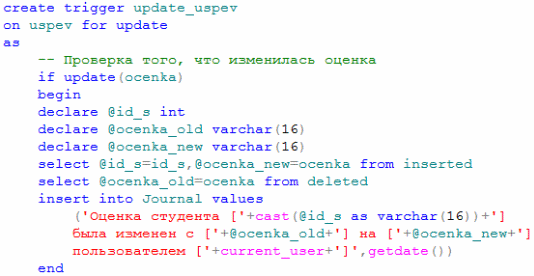 Реализация триггеров в SQL Server