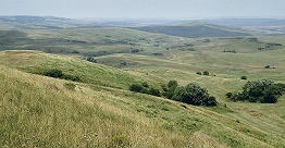 Эта часть холмистая, глубоко расчленена речными долинами и овражно-балочной сетью. Представляет собой ковыльно-разнотравные степи на черноземных почвах. Пашня составляет 70%, 20% - пастбища.
