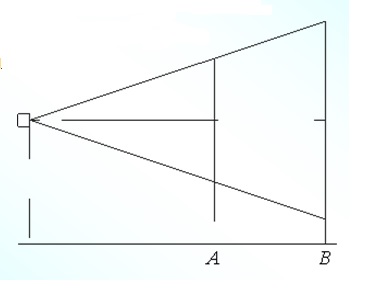 Проектор полностью освещает экран A высотой 80 см, расположенный на расстоянии 120 см от проектора. На каком наименьшем расстоянии (в сантиметрах) от проектора нужно расположить экран B высотой 320 см, чтобы он был полностью освещён, если настройки проектора остаются неизменными?